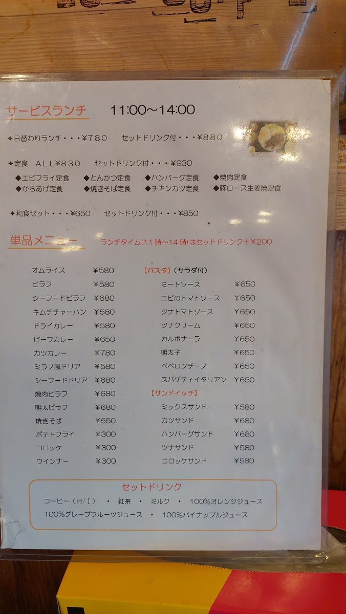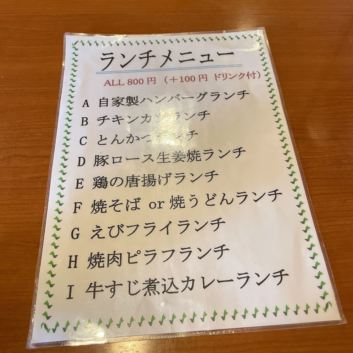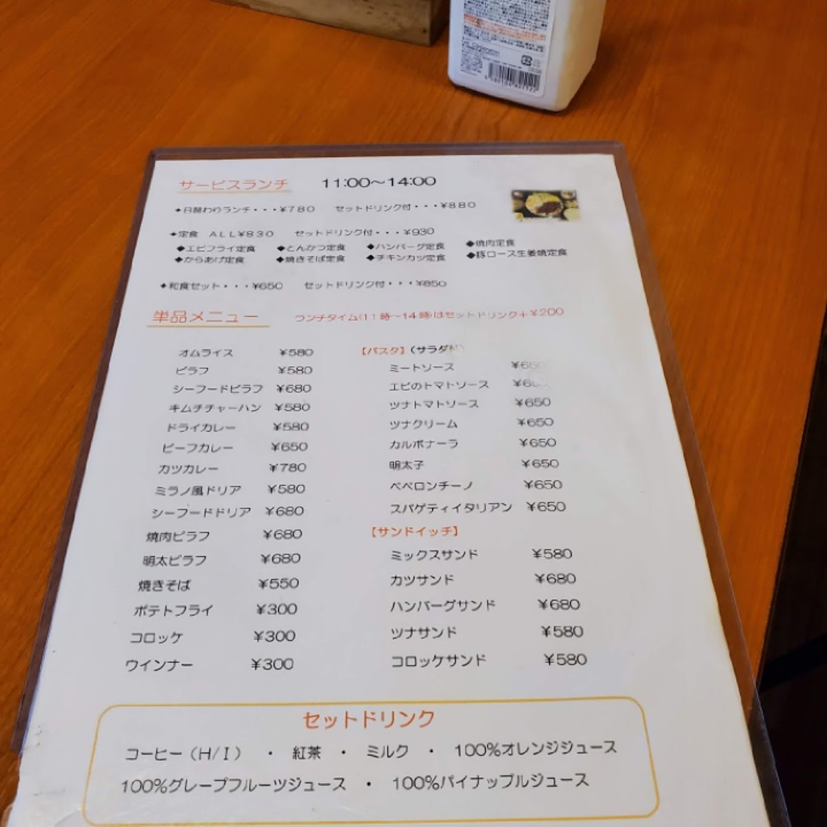 One standout dish is the tonkatsu set (とんかつ定食), available for only ¥780. This crispy, golden cutlet paired with a side of fresh cabbage is a must-try; it’s comfort food at its finest. For those craving something savory, the chicken karaage lunch (鶏の唐揚げランチ) and grilled meat pilaf (焼肉ピラフランチ), each priced at ¥800, are sure to satisfy. Diners will be pleased to note that adding a drink to any meal is just ¥100, making it an unbeatable deal!